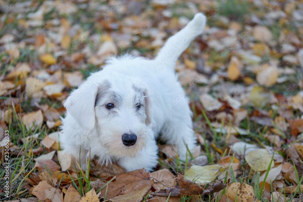 Cute Sealyham Terrier Puppy Is Walking On The Autumn Park Welsh Border Terrier Or Cowley Terrier Two Month Old Stock Photo Adobe Stock